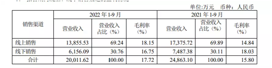 不过,浪莎股份的线上销售收入在2019年-2021年持续上涨。只是2022年1-9月,其线上销售收入则出现了下滑。