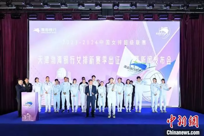 中新网天津10月31日电 (张少宣)11月4日,2023-2024中国女排超级联赛揭幕战即将在天津武清体育中心体育馆打响。天津渤海银行女排在经过阵容调整后,整装待发,即将踏上联赛新征程。31日,天津女排新赛季出征仪式在渤海银行综合业务楼召开。
