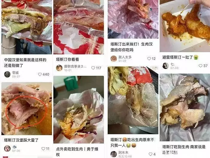 塔斯汀汉堡中出现生鸡肉的事件持续在社交网络上发酵。
