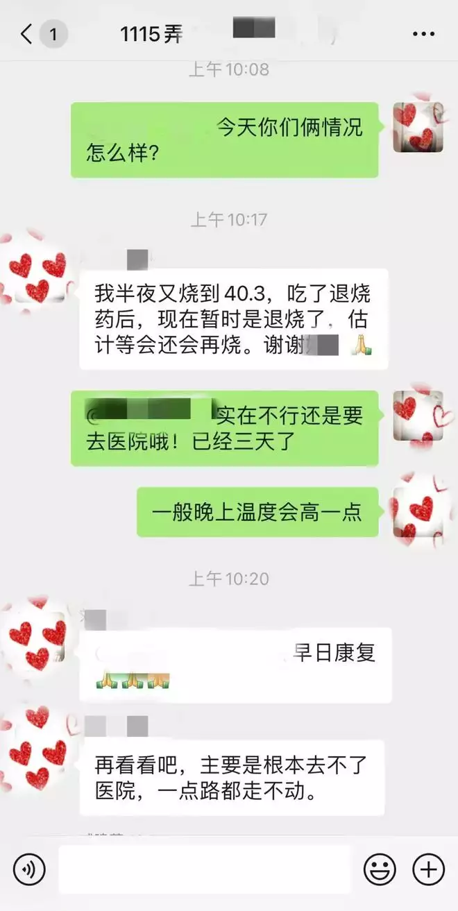 虹桥居民区党总支书记裔斐告诉记者,“我们的网格员每天都会在微信群中跟踪、关心楼栋内居民的身体状况,实时更新《居家治疗阳性人员名单》并上报给街道防疫办。一方面能让居委会干部及时听到感染居民的困难和需求,进行应急解答和指导;另一方面掌握独居、孤寡、大病等重点人群的感染情况,发动居民区党建合力,每天上门或通过微信、电话进行重点关心关爱。”