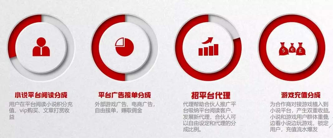 锌刻度咨询了多位小说代理平台加盟商之后,得知盈利主要由以下几个方面组成:其一是平台客户的阅读收益,包含积分充值、VIP购买、文章打赏收益等;其二是招收代理的收益,合伙人可以招募下一级的平台代理商,下级代理商在帮助合伙人推广平台的同时,也可以给合伙人提供一笔加盟费和后续收益分成(合伙人可以自由制定和代理的分成比例);其三是日常的广告接单分成,即各种广告平台广告高主合作的广告高收益分成。