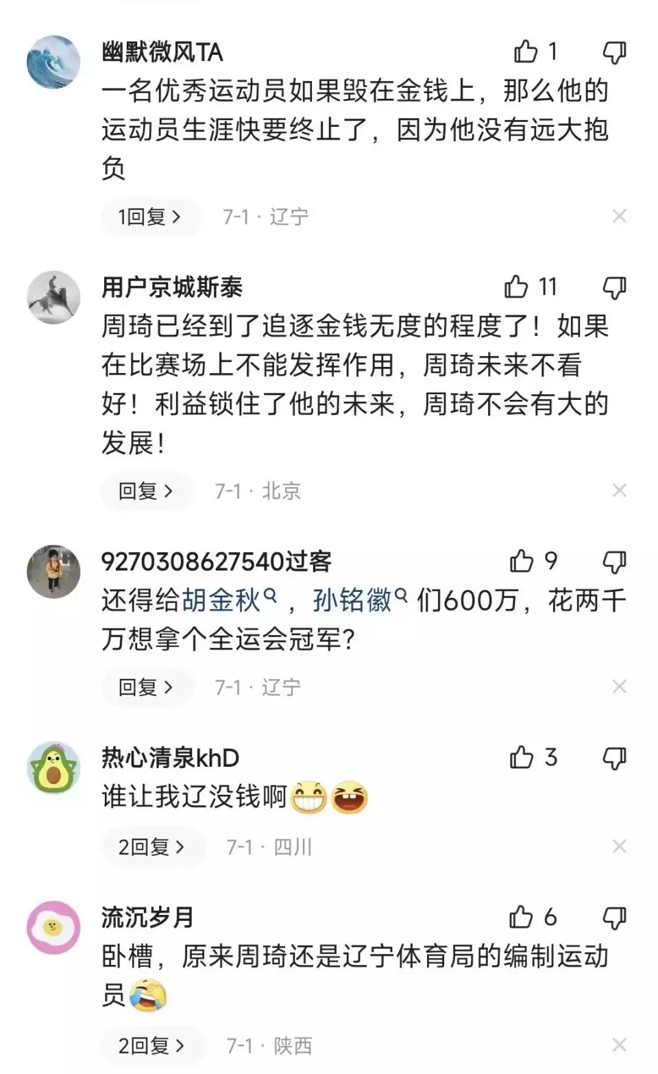 还有球迷表示:这没错的,谁培养谁获益,全运会确实应该如此,如果开了这种口子,广东省就永远是全国奖牌数第一了,以后就不再是大家想方设法培养专业运动员,而是比哪个省有钱,谁有钱谁第一了,篮球如此,其他各项运动也可效仿啊,这绝对不是一个好的开端。