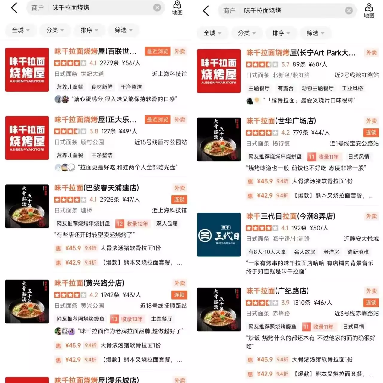 此外,门店的选址也影响了丸龟制面的流水。“从北京地区来看,丸龟制面布局在合生汇、王府井APM等核心商圈,定位在人均消费40元左右。倘若并非对日式乌冬面情有独钟,不会特意跑到这类核心商圈去品尝。”卓月补充道。对于普通消费者来说,无论是日式拉面、乌冬面还是中式拉面都是面类快餐,主要看中性价比,以及菜单的广度。如此一来,品类相同、价位更低的张拉拉、陈香贵等中式拉面或许更受到消费者偏爱。