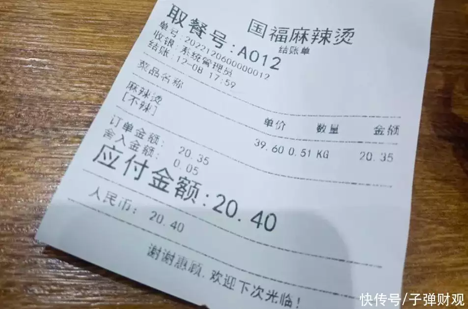 原来近期在辽宁大连的某高校,一位同学发现杨国福麻辣烫在他就餐时采用了反向抹零的方式进行结算:一碗麻辣烫20.35元被收取了20.4元;另一碗16.47元被收取了16.5元。