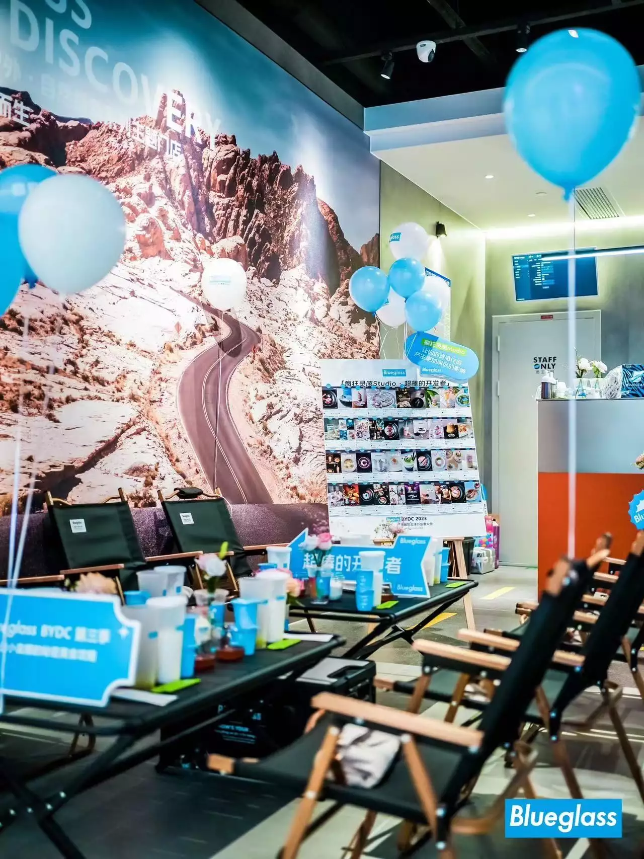 Blueglass来自北京,华中首店位于武商MALLB1楼,以“Better Discovery时尚户外自然探索主题店”的形式呈现。门店以丹霞地貌为灵感,棕橘色为主色调,配以露营桌椅、定制自行车。