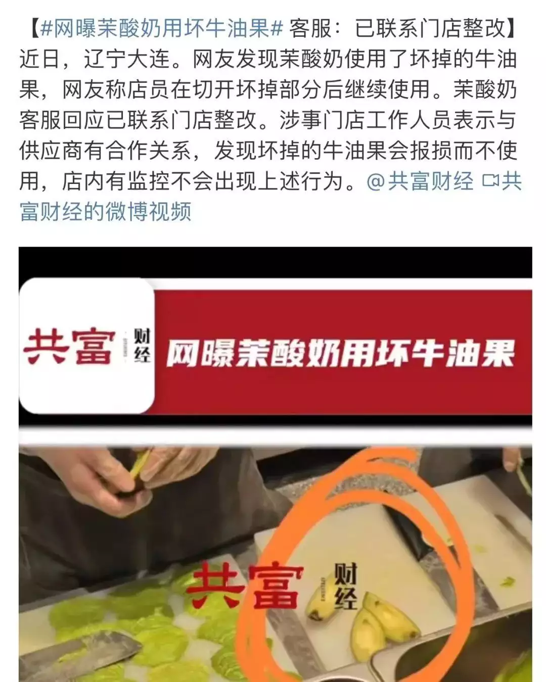 另一方面,像茉酸奶把产品结构划分三部分,酸奶奶昔、纯酸奶和奶黄金,分别对应不同场景和消费群体。无论是怎样的产品定位和结构,都不能对食材和制作产品中出现食安和卫生问题。就在近日,一则#网曝茉酸奶用坏牛油果#登上热搜,引来争议。