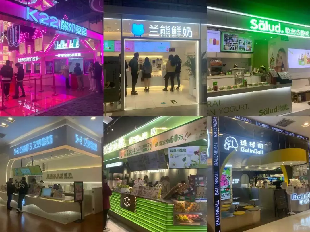 透过大众点评,内参君看到,在北京、上海、等地方,有许多酸奶品牌新店。其中不乏有K22酸奶草莓、茉酸奶、Blueglass、王子森林等具有知名度的品牌。内参君在走访中发现,几乎每个购物中心中,都有一家或者多家酸奶品牌,比如合生汇的同一层就有4家酸奶品牌。