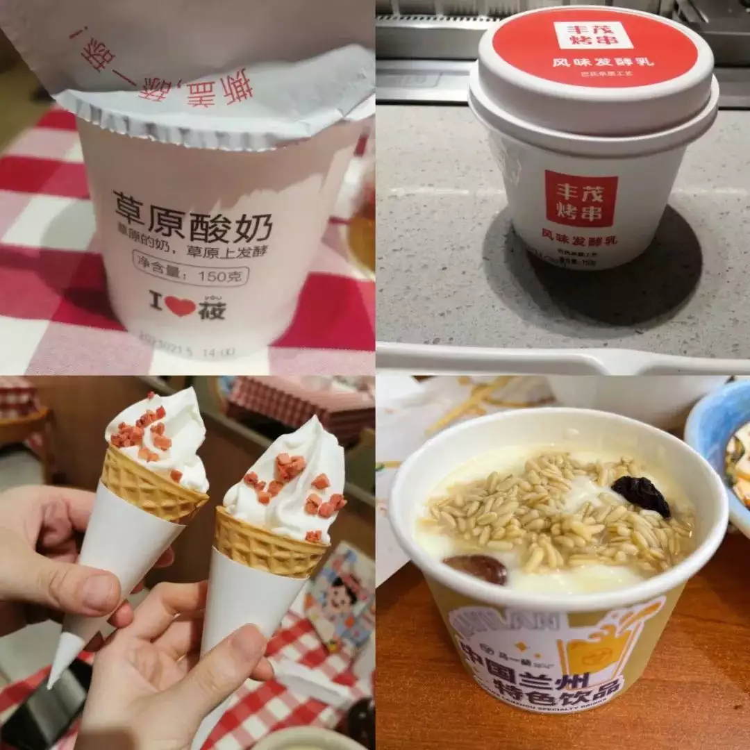 另一方面,餐饮企业也通过“原创酸奶”收获顾客好感,解辣又解腻。比如西贝不仅有自制酸奶,还新增加了酸奶冰淇淋;丰茂烤串的自制酸奶,马一兰牛肉面馆的甜胚子酸奶等。