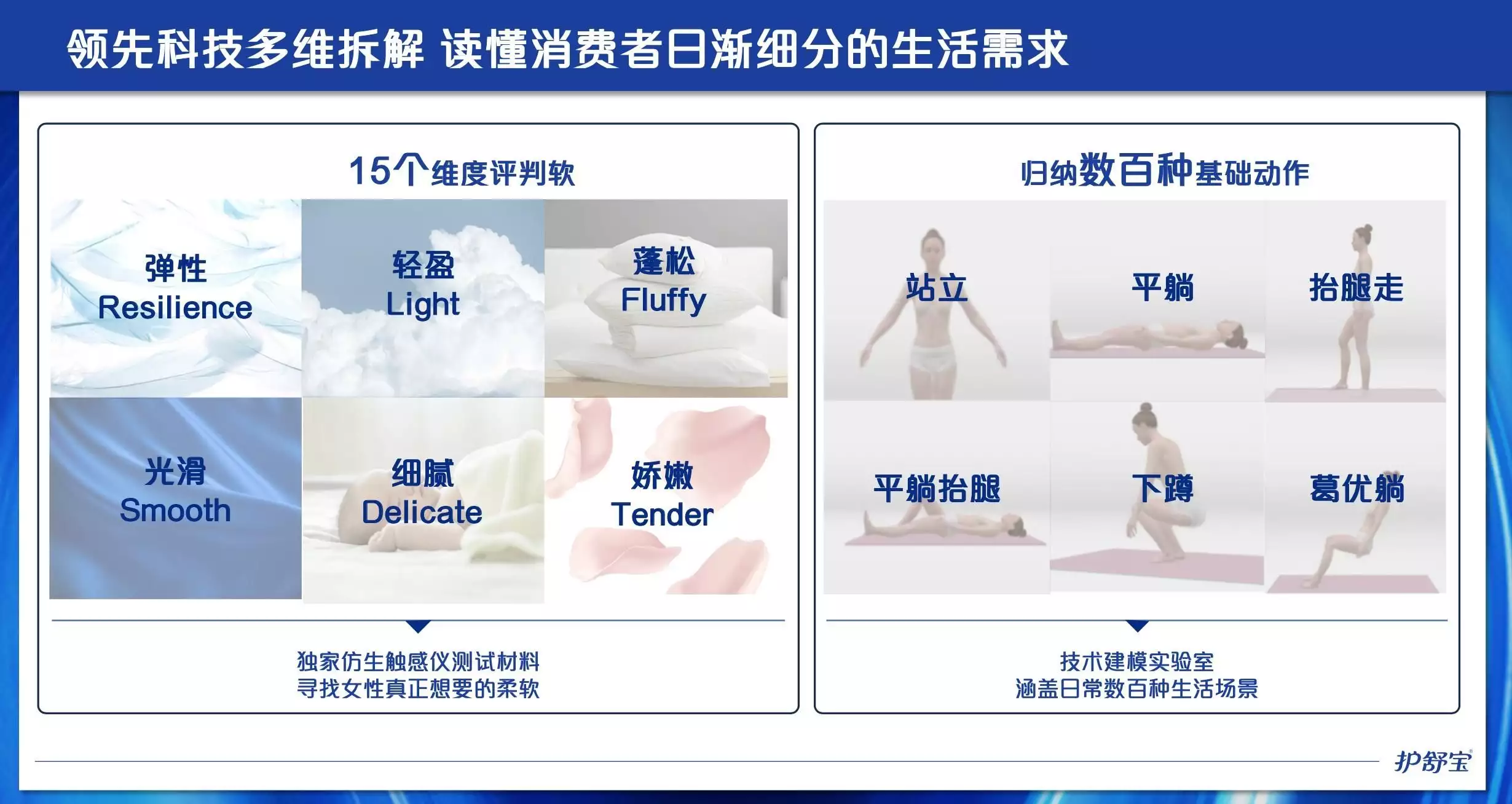如何量化舒适、无感等体验向来是品牌头疼的问题。这方面,护舒宝用上了AI语义分析、仿生触感仪,技术建模分析人体行动,和纺织业具有近百年历史的顶级学府合作,甚至用眼动仪来测试广告效果,为的就是让产品满足消费者的细微到极致的需求。