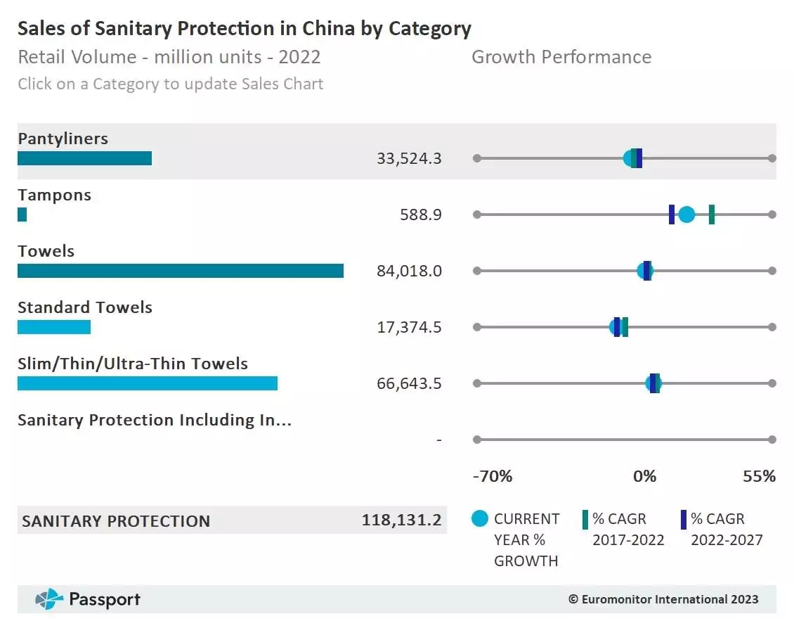 各种品类的卫生用品市场份额 来源:Euromonitor