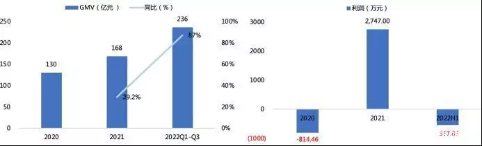 >商品销售业务主要模式资料来源:中信证券自公司2019年开始大力发展自营贸易业务以来,受Chinagoods平台发展的带动,商品销售业务的规模实现了爆炸式增长。2019-2021年,商品销售业务的营收从0.69亿元增长至25.9亿元,期间年复合增长率达到了513%;2022年上半年,商品销售业务实现营收24.01亿元,同比增长584.1%。然而,相比国内龙头自营电商、品牌电商动辄千亿、万亿的GMV规模,公司30亿上下的体量仍十分小,能否在未来的高基数下实现高增是该业务成长性的关键。与此同时,商品销售业务目前仍然处于扩大销售规模及维护渠道的前期发展阶段,毛利率极低,这使得该业务虽占据了超半数的营收,却无法为公司贡献相应的利润。这样看来,凭借商品销售业务现阶段所表现出的盈利能力,远无法成为公司的利润支撑点 。< style="text-align: left; margin-bottom: 10px;">