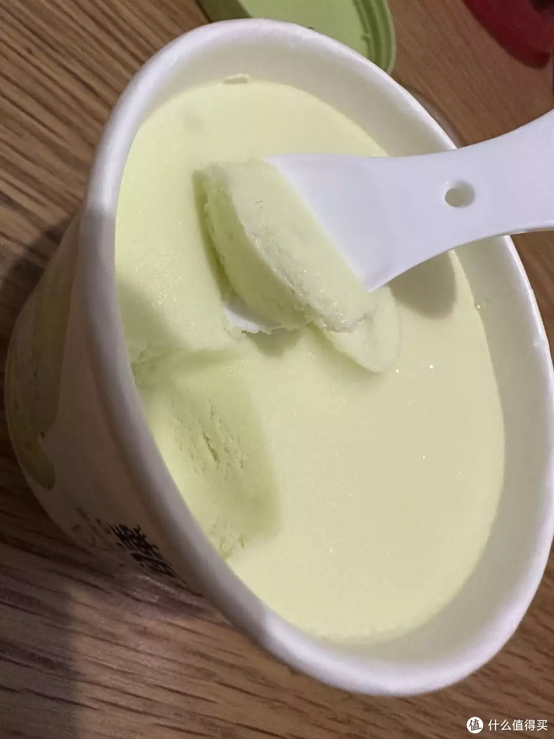 一勺子下去还是很细腻的,口感不错,不甜腻,有清香,奶味不算特别浓郁,更多的是水果的感觉,又不想很多水果冰。