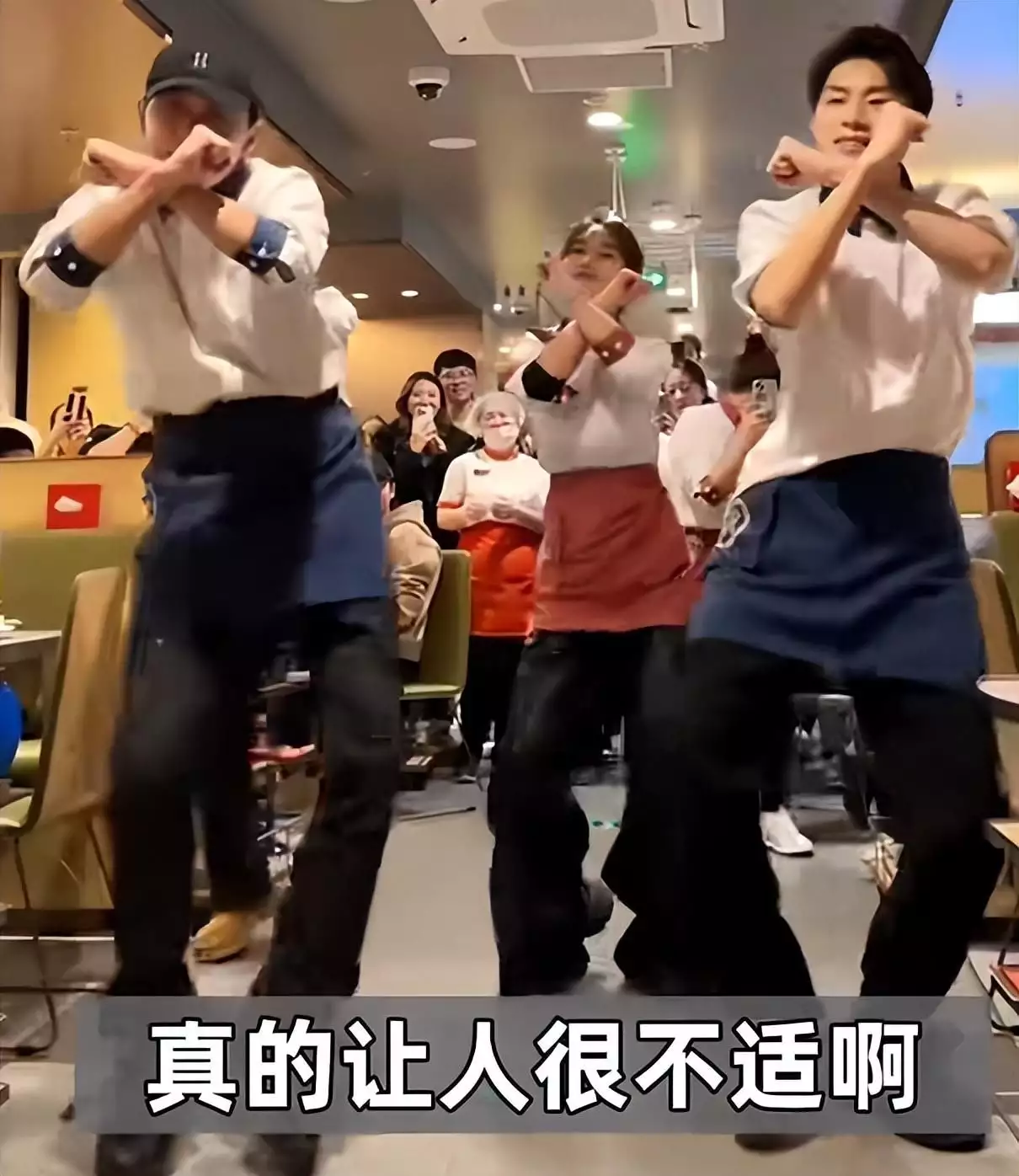 在部分海底捞门店,只需要对服务员说“我要科目三”,就会有俊男靓女上演土味舞蹈,年轻人觉得解压、治愈,所以现在很多人去海底捞不是去吃饭,而是去观看“科目三”的。