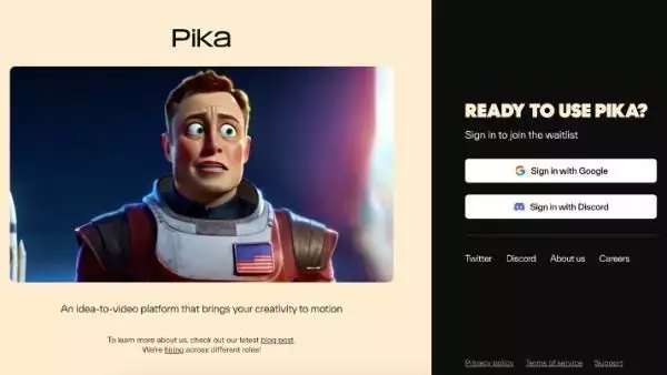 根据Pika的官方博客文章,团队在半年前创立时的目标是“希望挑战技术的极限,设计一个有未来感的视频制作界面,让制作视频对每个人来说都变得轻松且易于访问。从那时起,我们很自豪地见证了Pika社区的增长,目前我们社区已经发展到50万用户,每周生成数百万个视频”。