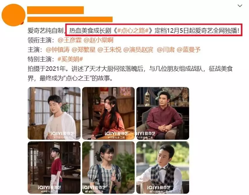 24集都市大剧《点心之路》明晚开播,12月5日起,桃厂全网独播,12月终于有好剧看了。