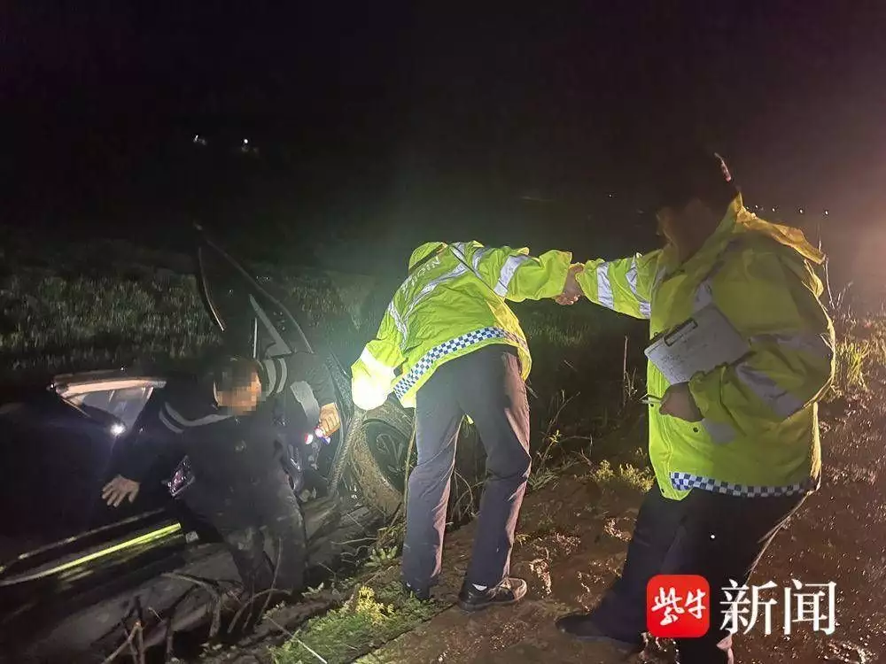 扬子晚报网4月4日讯(通讯员张经国何清国记者朱鼎兆)4月3日晚,盱眙县境内普降大到暴雨,雨夜路滑视线差,一辆轿车不慎滑入路边侧翻水渠中,当地派出所民警接警后几经周折找到现场才帮助驾驶员脱离了困境。