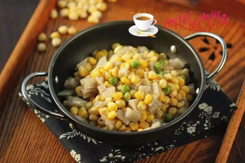 制作:1. 将莲藕去皮后切成与玉米粒大小的丁;