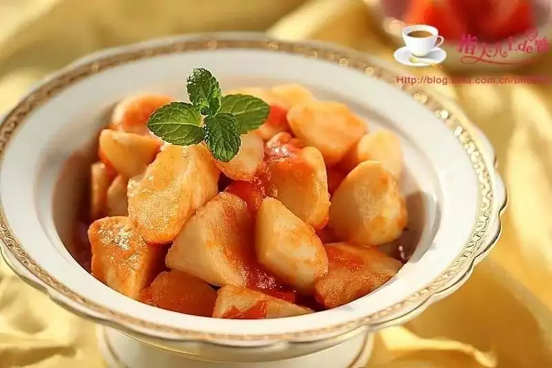 原料: 铁棍山药 1根 番茄 2个 番茄酱 2勺 糖 1勺 油盐 适量