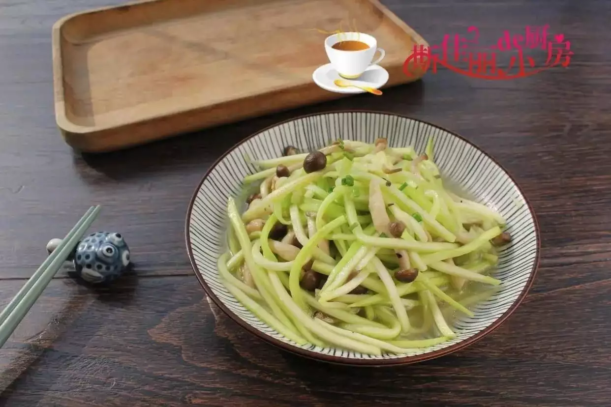 制作:1. 将笋瓜去皮后切成细丝备用; 蒜切成细末备用;