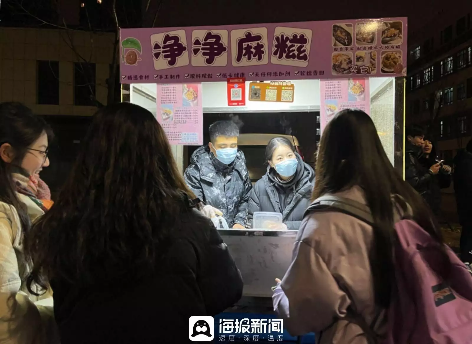 凌晨一点钟,当人们还在睡梦中的时候,为了买到新鲜的荔浦芋头,净净麻糍的摊主韩静已经出发前往批发市场进货了。从九月份摆摊创业以来,这便成了她每天工作的一部分,虽然辛苦些,但她却乐在其中,也在日照大学城各所学校附近闯出了自己的名气。