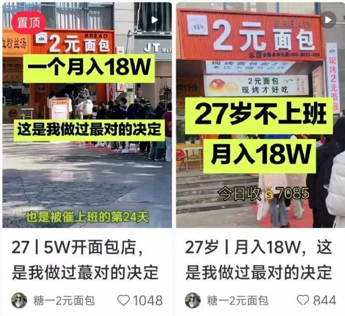 与此同时,监管部门和平台也应及时出手,对涉嫌虚假宣传、违规开放加盟的乱象进行清理。至少,不要让人们动不动就刷到诸如“2元面包店月入14万”这些“洗脑”视频了。