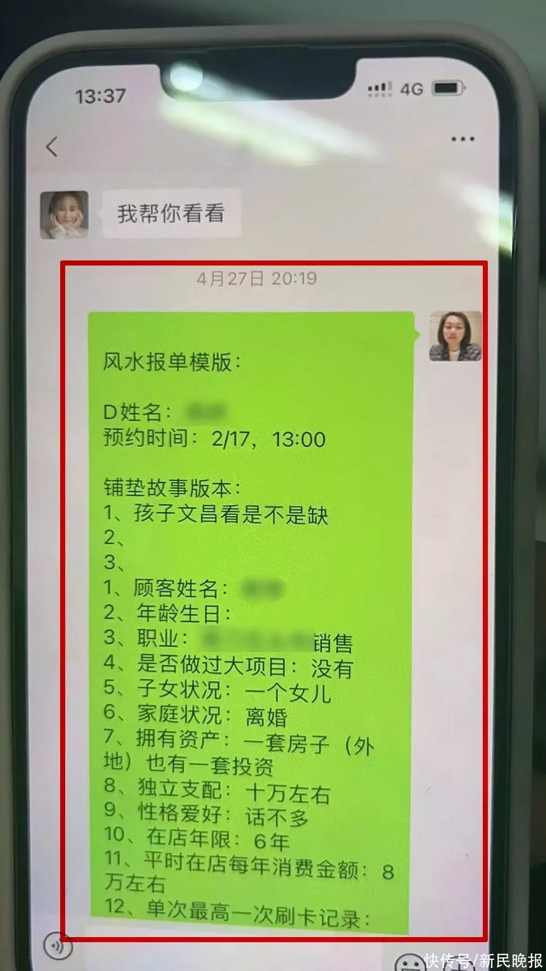 据统计,全市有37家美容店店长、店员协助套取被害人个人信息,并按照诈骗团伙要求,在日常服务过程中留意对风水命格、算命调运教感兴趣的顾客,按照消费能力、可流动资金分类建立“一人一档”,提交给“大师”掌握。