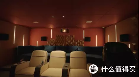 让我们先来看看智能影音室。摩根全屋智能家居系统的影院模式可以将墙上的线型灯和顶部射灯错落有致地亮起,影音设备和空调也会自动启动。当家人和朋友们落座之后,灯光会逐渐熄灭,带给你沉浸式的观影体验。你可以坐在舒适的沙发上,欣赏高品质的画面和声音,完全沉浸在电影的世界中。