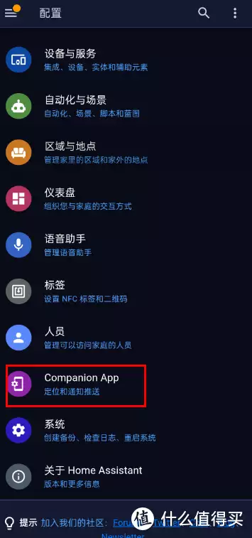 不过这一步完成,会发现我们出门后,状态变更不及时,一个是定位刷新频率问题,一个是HA原版的app地图网络问题,定位问题我们可以到手机app的配置>companion app中调整传感器刷新频率和位置传感器设置,网络问题可以找下网上大佬魔改的国内版本Homeassistant app来解决。