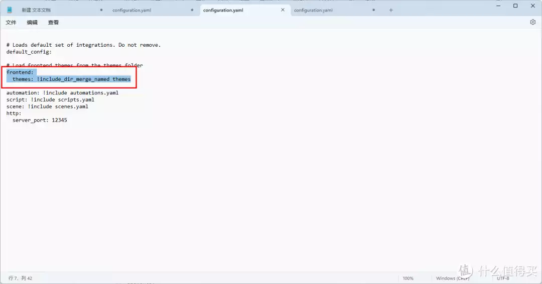 首先到configuration.yaml文件中添加如下内容: