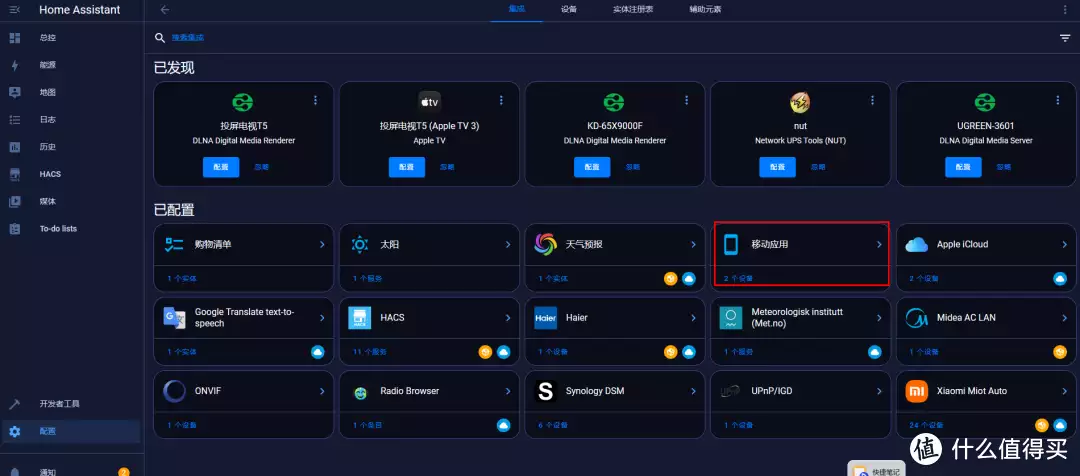 再使用对应人员的手机下载homeassistant手机客户端,使用对应的账号登录客户端,登录后HA中就会生成一个移动应用的设备。
