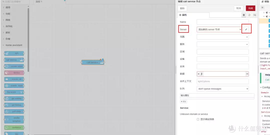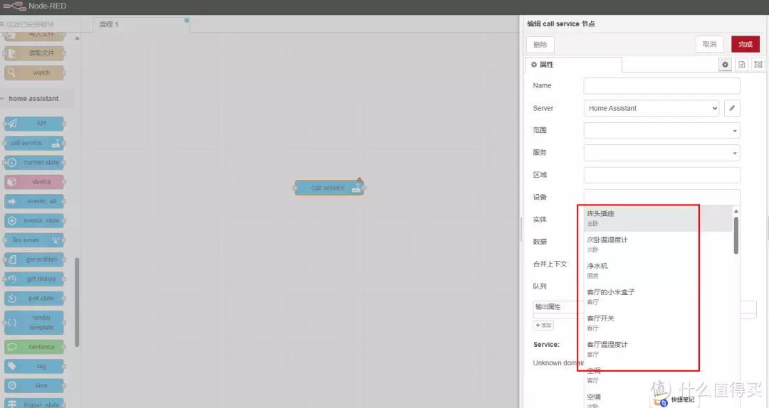 然后再回到node-red web端,现在可以在左侧看到homeassistant的节点了。
