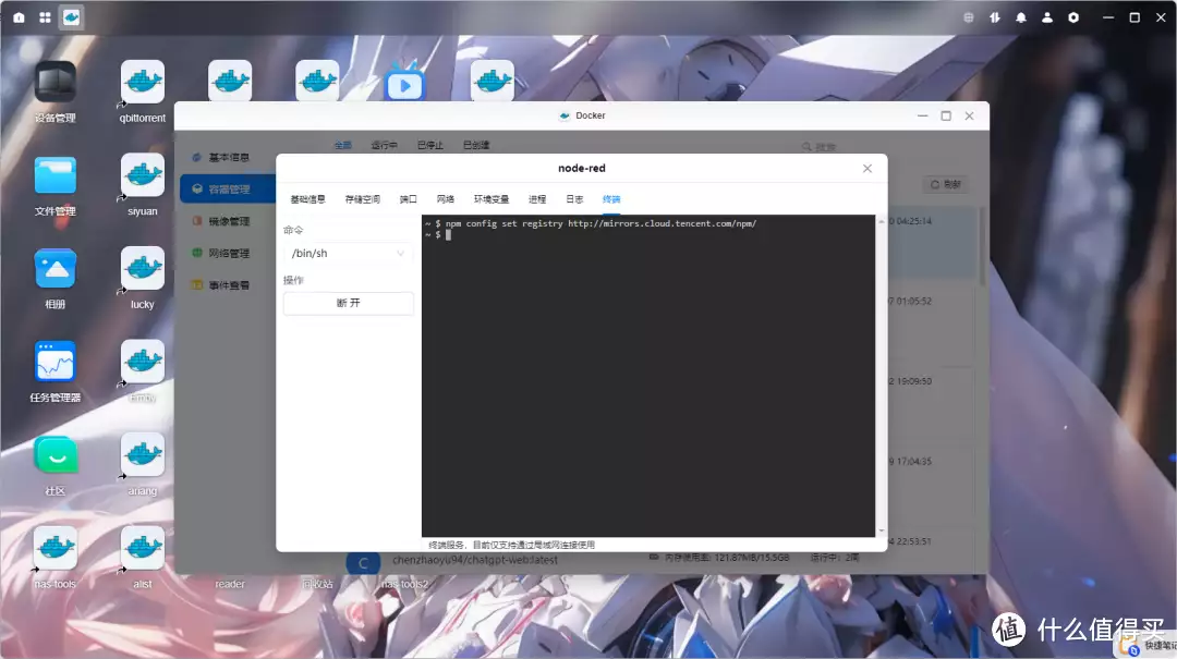 再输入以下代码,回车,等待一段时间,显示如下图样式则重启下node-red容器。