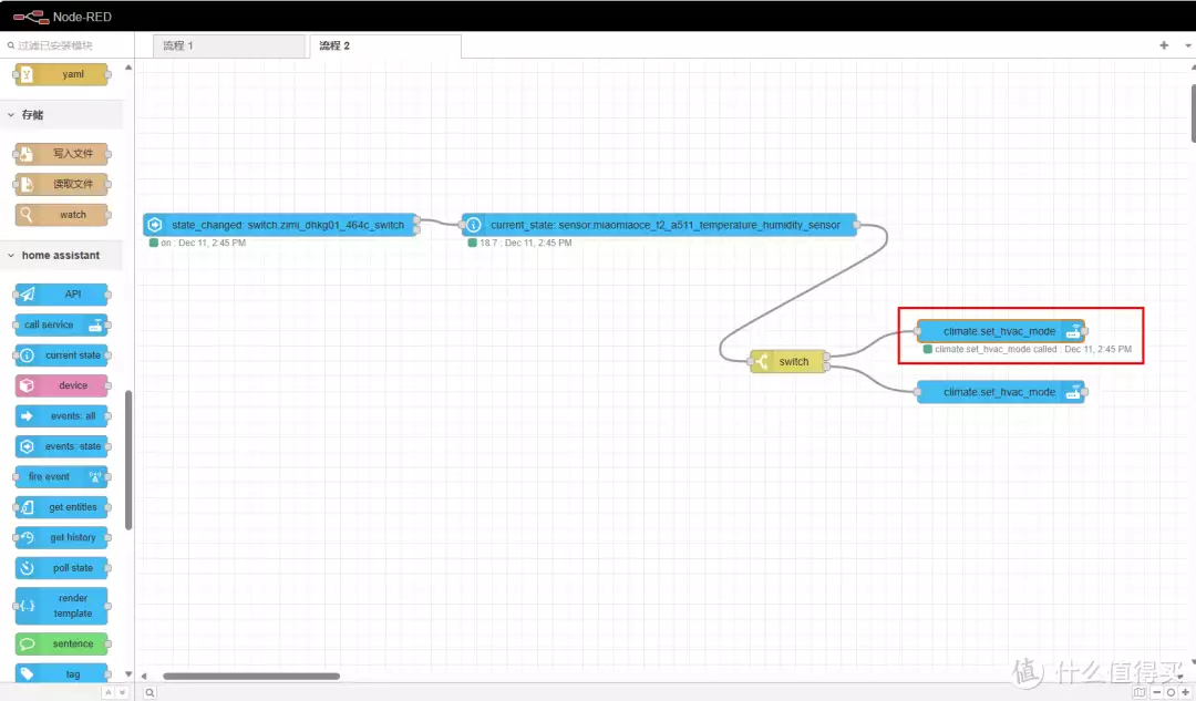 重新开关等实验一下,可以看到已经起作用了,并且正确的走了上面制热的流程,我这里是演示教程,大家使用的过程中,记得每个组件都命名下,方便后期维护。