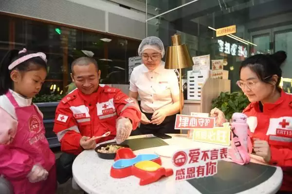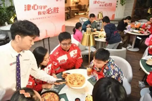 在天津,必胜客邀请天津市红十字会应急救援队队员,到必胜客餐厅品尝超级至尊比萨、美味小食以及暖暖热饮,感恩他们奔赴抗洪防汛一线的义无反顾,节日假日24小时待命的辛勤付出。应急救援队员现场分享在天津静海、武清以及河北涿州抗洪防汛工作中的点点滴滴。