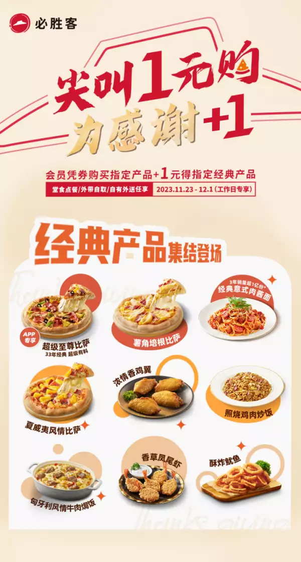传递品牌大爱,争做社区好邻居。在品牌建设的同时,始终不忘初心,践行感恩回馈。从助农发展、到节日关怀、再到宠物关爱,传递梦想。有爱必胜,是必胜客这些年来一直坚持的理念,让所有人都能在生活中感受到温暖和爱。每一款经典的餐品都离不开消费者长期的支持,每一个普通的工作也离不开基层工作者辛勤的付出,在这个感恩的季节,必胜客以感恩回馈的形式,表达感谢。“谢谢你们长期的坚定,谢谢你们的每一份贡献。必胜客将始终坚持和消费者在一起,今后,也将持续输出自己的光和热,照亮更多的角落。”