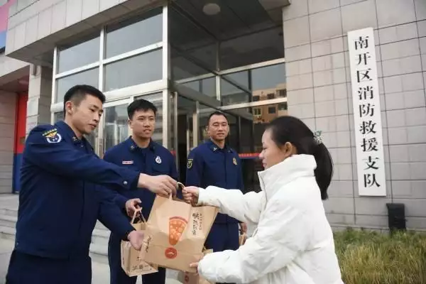 津城迎来入冬初雪,天津必胜客为南开区灵隐道消防站工作人员送去大红袍热饮,将“感恩暖意”以“暖心热饮”为媒,传递给坚守在岗位上的“蓝朋友”。