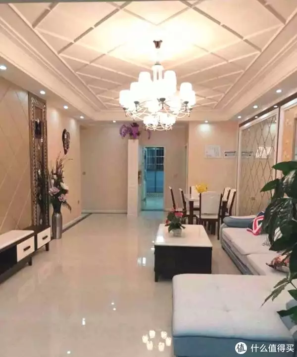 下面我们就来看看装修效果图,客厅和餐厅是开放式格局。装修效果有点华丽,时尚清新为主。天花板装了灯带吊顶,还有交错纵横的石膏线条。餐厅的墙壁做了玻璃装饰,视觉效果方面非常敞亮大气!