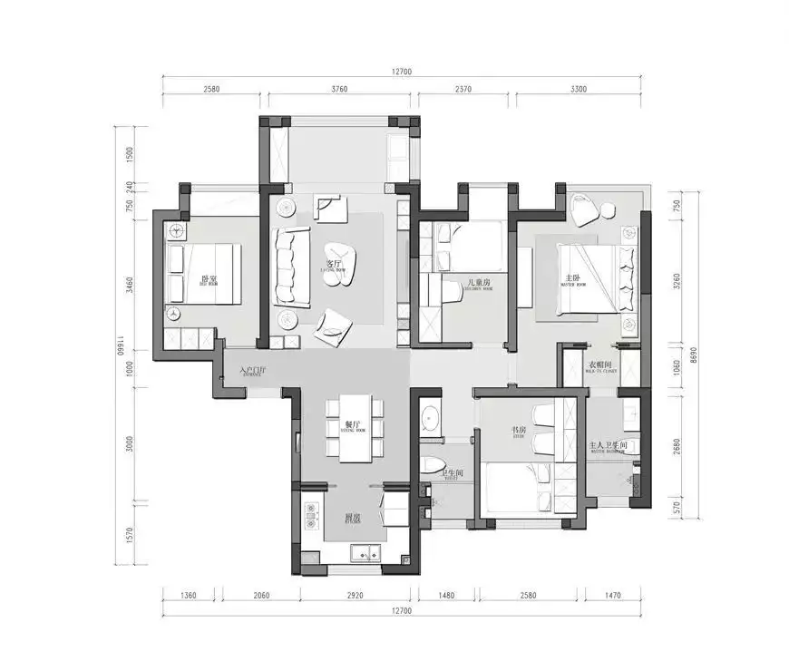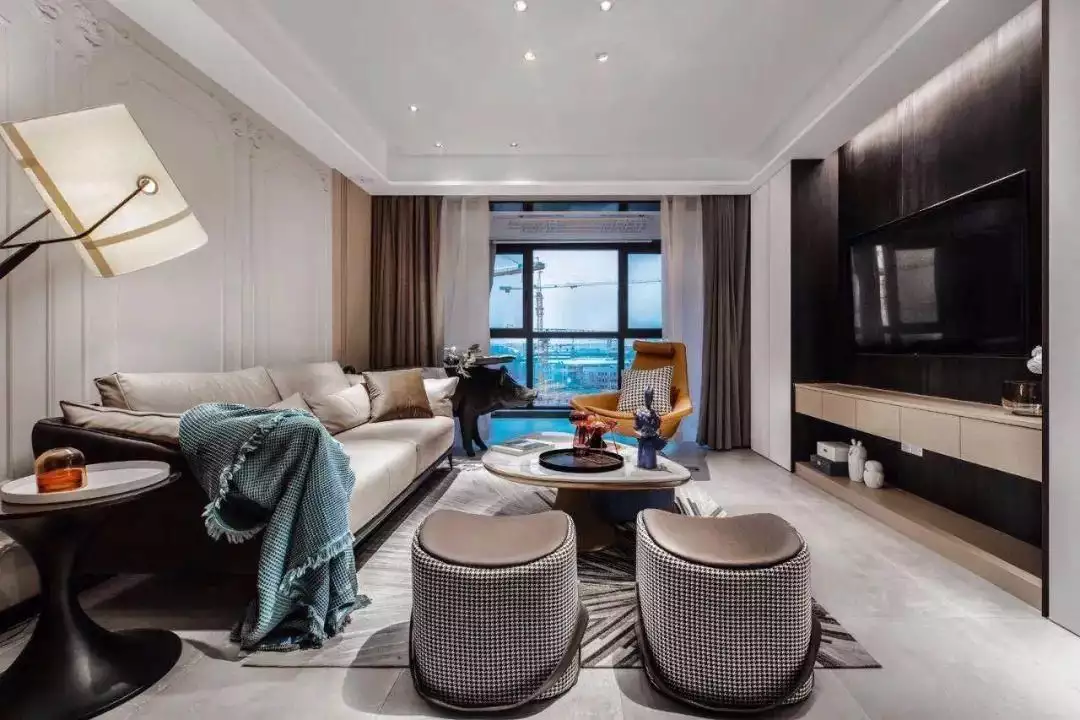 这是一套大概120平米的装修案例,整体空间以现代风的风格搭配,加入沉稳端庄的家具与配色,使得空间充满优雅高级的仪式感。