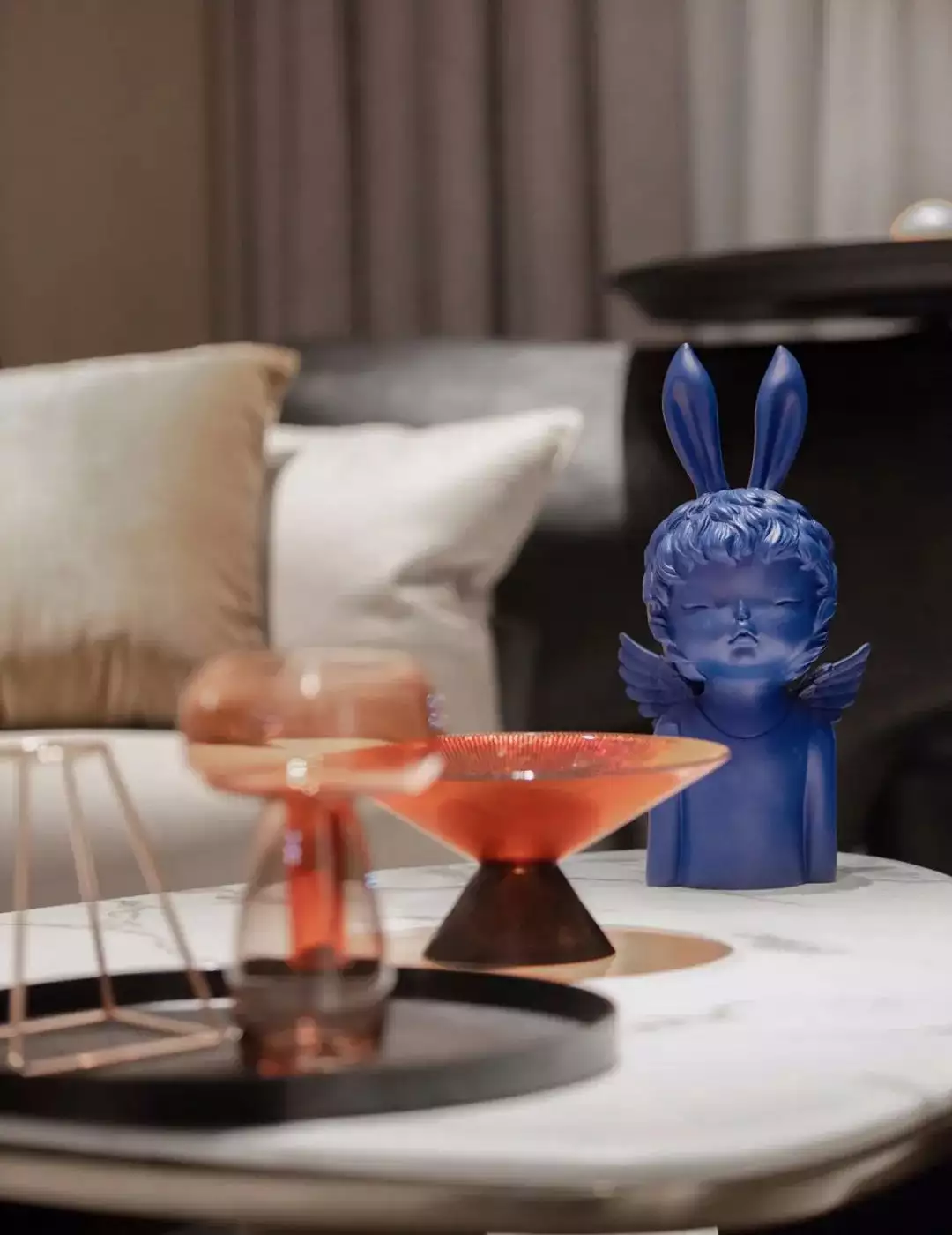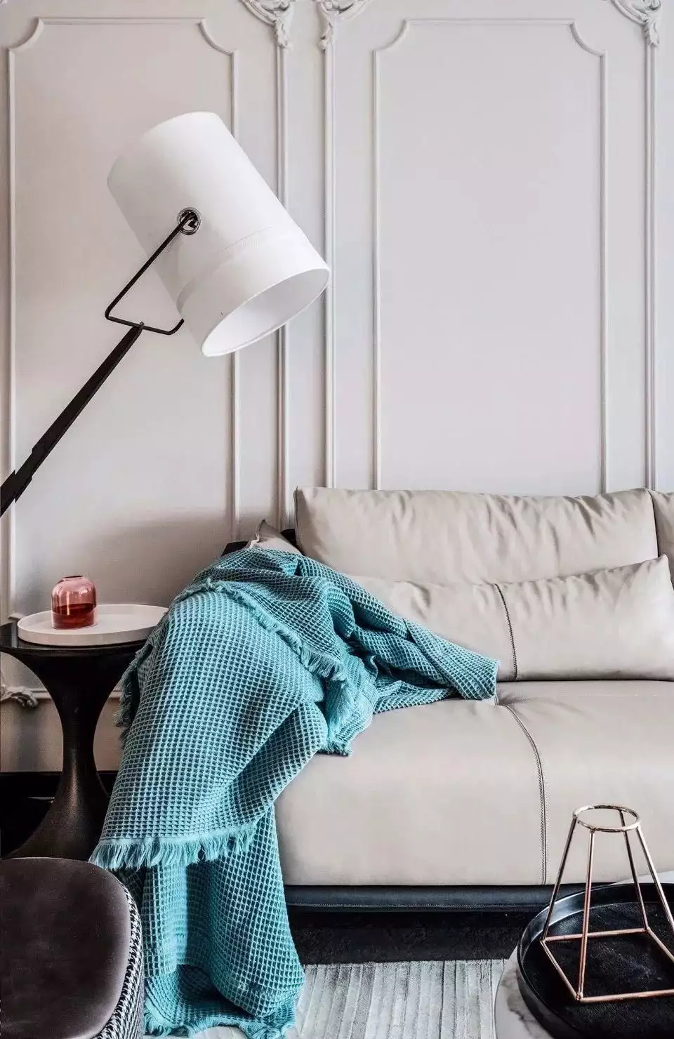▲沙发上布置蓝色毯子,茶几上摆上精致的摆饰品,使得整个客厅都充满华丽精致的舒适与惬意感。