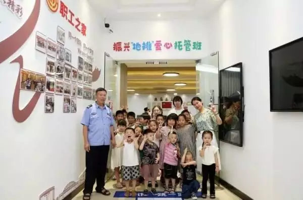 振兴路和东岘路交叉口,是振兴路地摊经济联合工会的驻地,如今成了爱心托管班的所在地,“用爱做托管,用心做地摊”,墙上张贴的标语格外醒目。300多平米的教室布置得像一个儿童乐园,配备了风琴、木马、滑滑梯等教具玩具等设施设备,孩子们围成一圈,拍着小手唱《上学歌》。