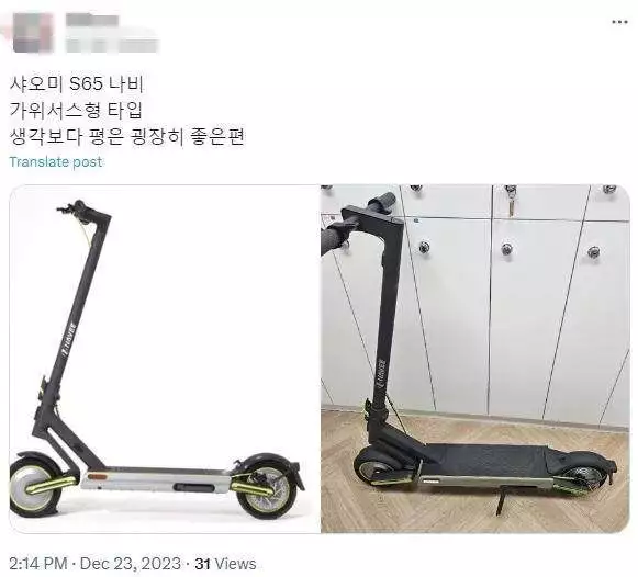 韩国网友在购买中国产智能滑板车后,点评性能“超乎想象”。图片来源:社交媒体截图
