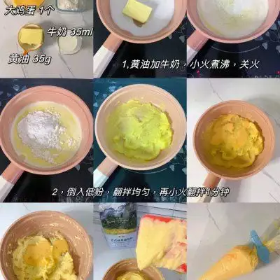 用料灵魂奶油 水 12克糖 30克蛋白 个15黄油 170克炼乳 20克面包坯最佳配比 高筋面粉 250克糖 40酵母 4蛋 1个盐 3奶 110奶粉 12克黄油 30克泡芙酱不写了,放在图片里 做法步骤 < style="text-align: left; margin-bottom: 10px;">