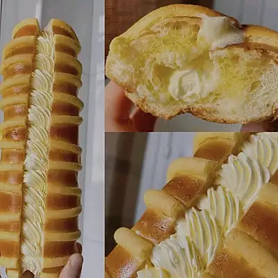 我大姐是开面包店的嘛,二姐开烧烤店。姑父和妈妈也是厨师。所以我对美食特别感兴趣,有好多好的配方,我也会分享给大家的。 因为是加盟店嘛,每周有培训,就有讲这种老面包胚子,加上我会老奶油制作方法,相结合不就是毛毛虫面包吗?试了几次终于找到最好的配比,跟老师的有一点点差别,是更符合于咱们童年记忆中的味道