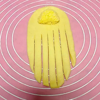 6、卷起来,缝隙挤上沙拉酱,或者豆沙,更适合用于豆沙包,也更美观,但是跟儿童的时候集中都有点不相像,所以大家喜欢,啥样的就做啥样的