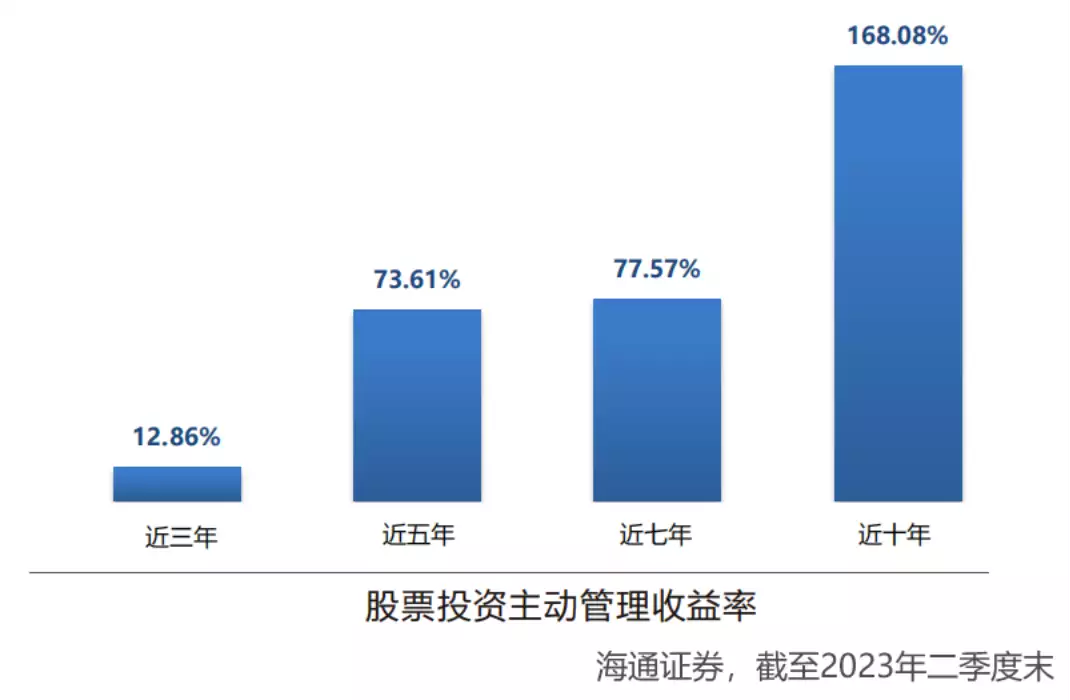 业绩方面,海通证券数据显示,招商基金近1年、近2年债券投资收益率在固定收益类大型公司中均排名第一,分别为2.94%、7.62%。此外,公司在股票投资主动管理收益率方面也可圈可点,近3年、近5年回报分别为12.86%、73.61%。