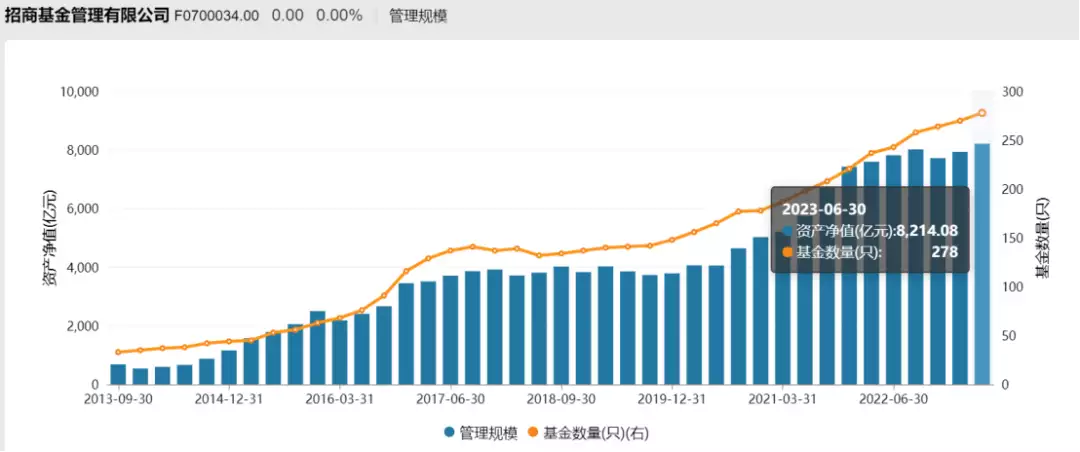 记者注意到,近五年来,招商基金公募基金管理规模稳步攀升,截至今年二季度末,在管公募基金规模达8214.08亿元,较去年同期增长了5%。