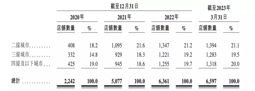 招股书显示,2020年初,茶百道有531家店,今年3月底,增加到了6597家。