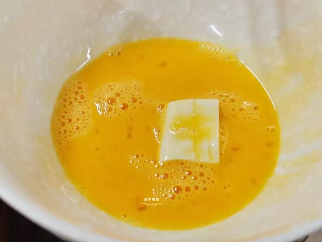 1、把嫩豆腐切成均匀的小方块,然后将鸡蛋磕在碗里,打散之后加入少量的食用盐搅拌均匀,把豆腐放在碗里,裹上一层蛋液。