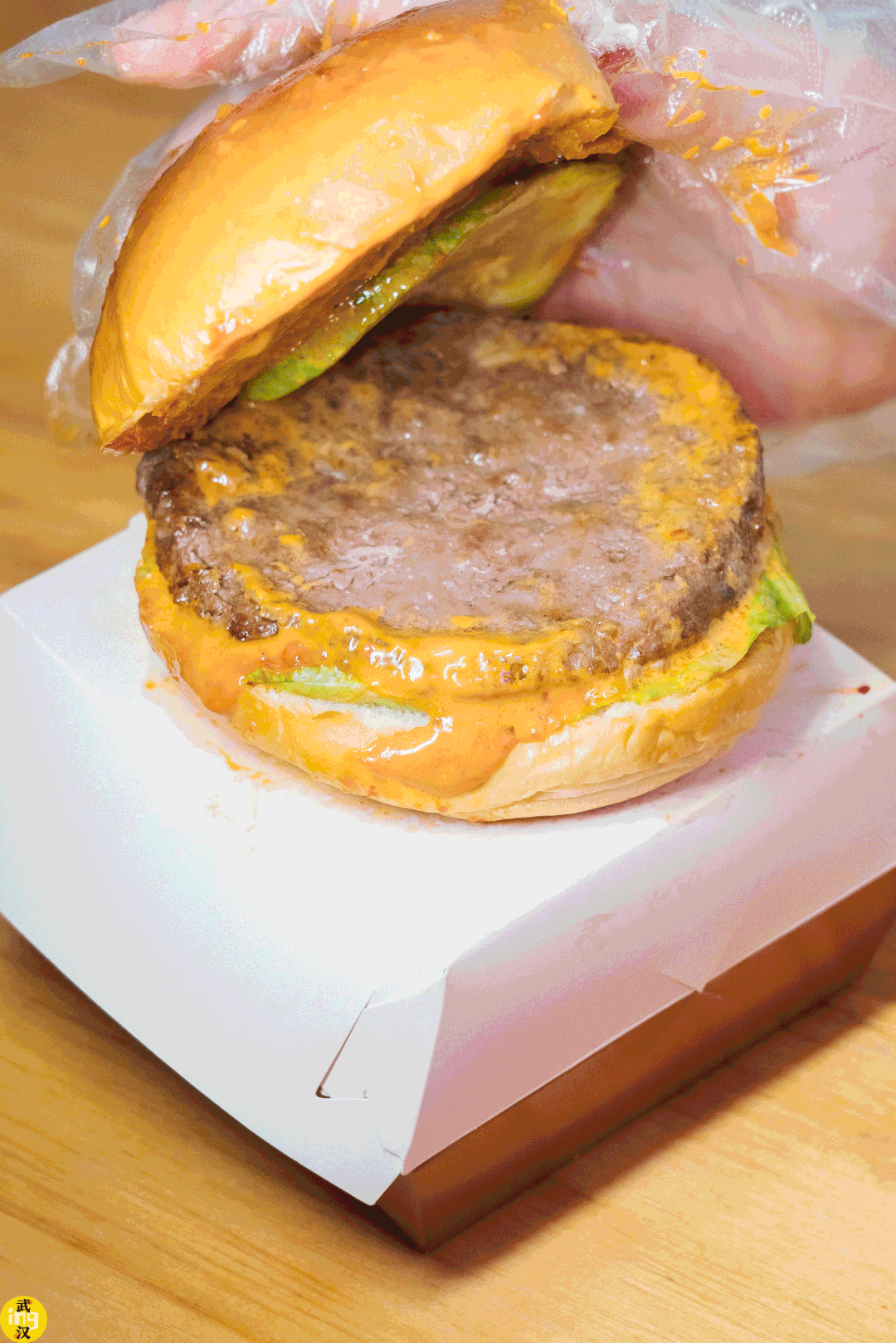 前进5路店的新品汉堡,为了满足对芝士不感冒又酷爱肉饼口感的顾客研制。