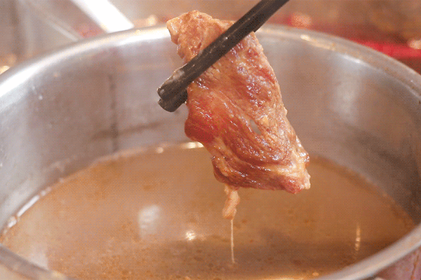 汤刚上桌,小田就迫不及待喝了一口。鲜味充斥口腔,随着炽热冲进肠胃,整个人的食欲都被打开了。涮会儿肉再喝一碗,完全是另外一种风味,肉香十足,还根本不会腻。